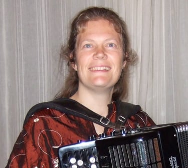 Helle er ligeledes konservatorieuddannet og har årtiers erfaring med at stå foran et publikum. Som akkordeonist og erfaren fortæller mestrer hun kunsten at fange en sal fra første ord eller tone. Hendes rejser og turnéer – blæst i gang af nysgerrighed på kulturmøder – har givet hende en dyb forståelse for de skæbner, hun formidler på scenen.